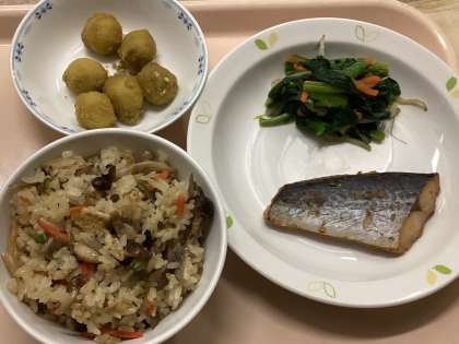 今日の給食では、魚に春と書く鰆をゆずの香りをきかせた幽庵