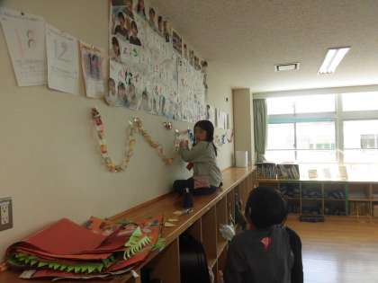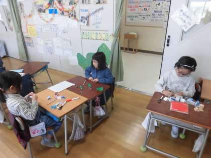 木曜日のお楽しみ会に向けて、景品を作ったり、飾り物をしたりと、楽しそうに、準備を進めていました。
