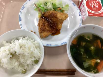今日はこの春の時期、恒例のグリーンピースごはん。