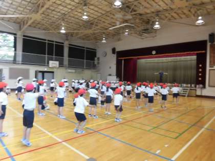 1・2年生が大玉おくりのときに踊るダンスを練習していました。