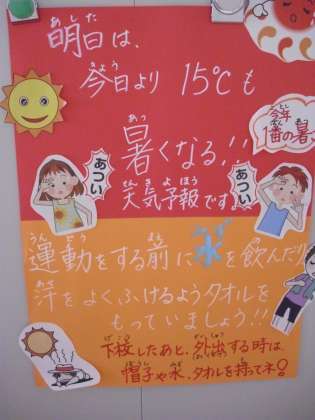 養護教諭が、下校する児童への注意(健康への配慮)を促しました。