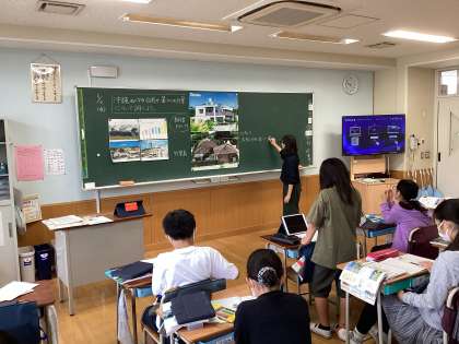 沖縄の家の様子について、気が付いたことを発表し合っていました。