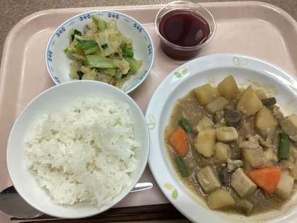 主菜の煮物には根菜類がたっぷり。副菜の和え物も