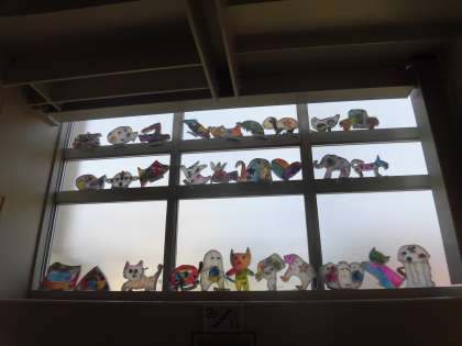踊り場に降りそそぐ、彩光が、作品を輝かせます。