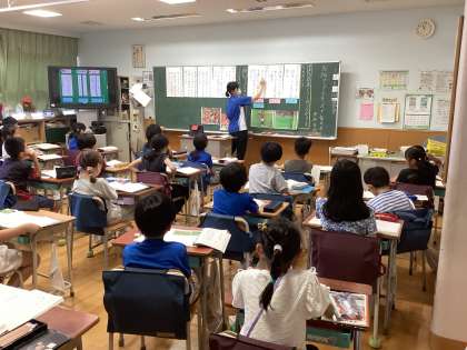 国語、「アップとルーズ」で、段落の構成について考える授業でした。