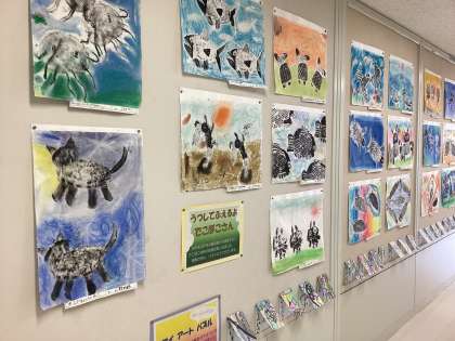 教室や廊下は、美術館でもあり、発表の場でもあり、交流の場でもあります。