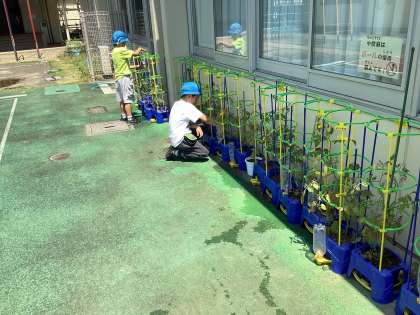 2年生の子どもたちは、実になったトマトの色の変化を日毎に教えてくれたり、収穫できたトマトを嬉しそうに見せてくれたりしています。