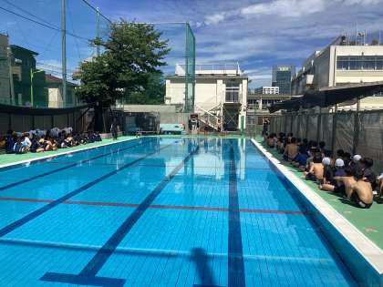 梅雨の合間の夏の日差しが降り注ぐなか、5・6年生のプール開きがありました。