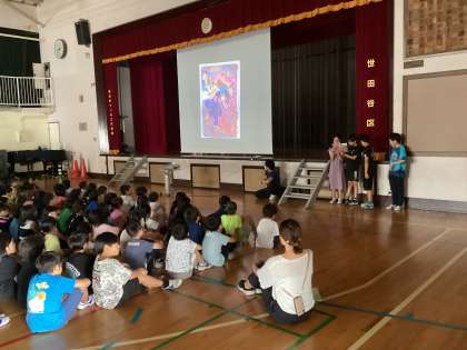 図書委員会の児童が、低・中・高学年向けのおすすめの本を、読み聞かせしてくれました。