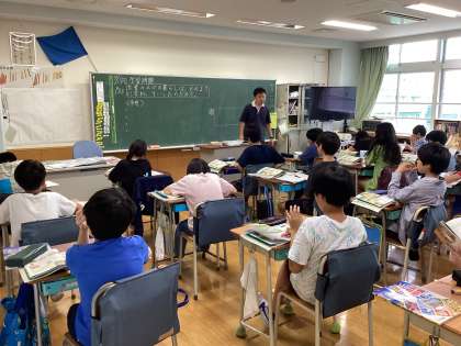 5・6年生は教科担任制で進めています。主に理科・社会を、担任間で担当を決め、学級をまたいで受け持っています。