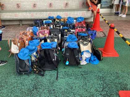 朝スポのランドセル、3年生の女子児童がきれいに並べて置いてくれました。
