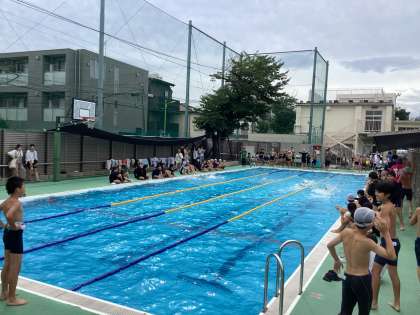 水泳記録会、スタートの時の緊張感を乗り越えて、みんな力強い泳ぎをして、感動的でした。