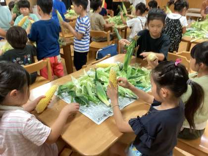 今日の給食では、実際に2年生が皮剥きしてくれたとうもろこしが、出てきます。