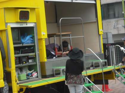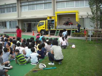 今日は、起震車訓練を行いました。4年生は全員体験しました。1,2,3,5,6年は、4名の代表者に体験してもらいました。「揺れたなと思ったら、机に潜る。正座をするように、膝を床につける。頭を丸めるために、おへそを見る。」について、訓練を頑張りました。また、今日は、三軒茶屋保育園の二次避難訓練とも時間が重なり、校庭は、避難所さながらの緊迫感でした。