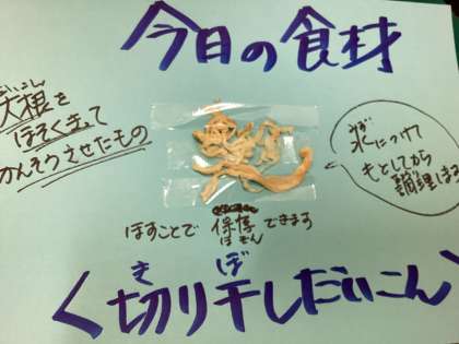ルケースの上に、その日の給食食材から1つを取り上げて