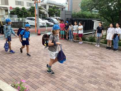 クラスカラーそのままに、みんな元気に楽しくあいさつしていました。