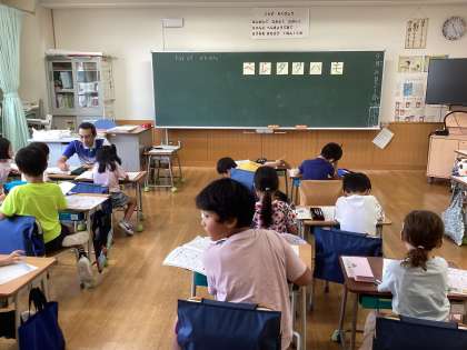 カタカナの学習。カタカナで表記する、ものの名前をワークシートに書いていました。