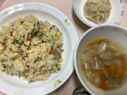 献立 卵とハムのチャーハン