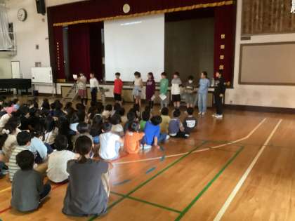 図書委員会の児童が、おすすめの本を、題名クイズ形式で紹介してくれました。