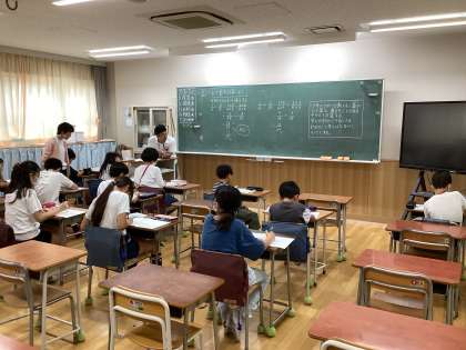 集中して取り組み、また先生の説明もしっかり聞いていました。通分をしてから計算し、可能ならば約分しておくことを学んでいました。
