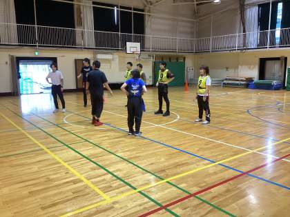 教員研修で、国士舘大学体育学部准教授の 陳 洋明 先生をお招きして、タグラグビーの研修を実施しました。