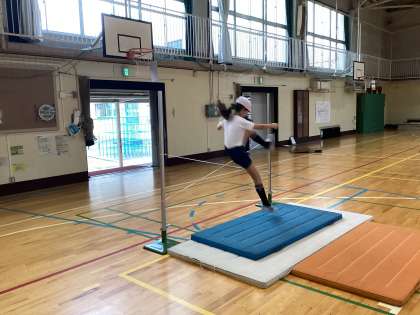 5時間目は、5年1組が体育「高跳び」の研究授業を行いました。