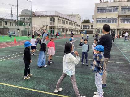 下学年の子どもたちは、コーチ陣の助言を聞きながら、試合形式の練習を頑張っていました。