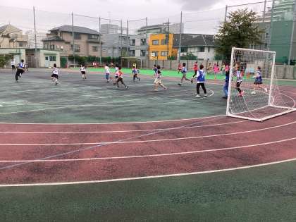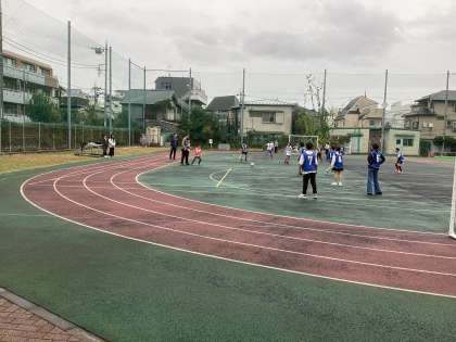 校庭から賑やかな声が聞こえてきたので、覗いてみると、6年生がサッカーをして盛り上がっていました。「体育」ではなく、「特別活動」の「学年サッカー大会」とのことで、みんな私服で楽しんでいます。クラス対抗の試合もあったのでしょう。とにかく楽しそうな一コマでした。