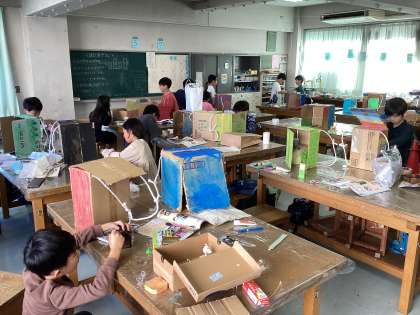 図工「ワクワクスーパーランドセル」の制作風景です。