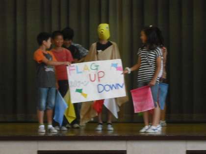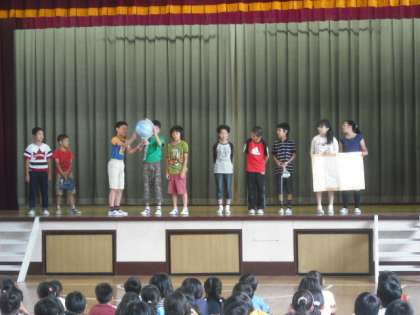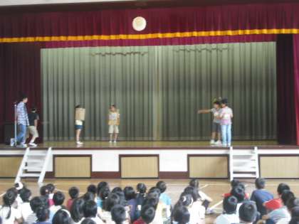 今日の児童集会は、中里子どもフェスティバルのCM集会でした。2〜6年生の代表が、お店の紹介を工夫をこらし、行いました。26日(火)の学校公開初日が中里子どもフェスティバルです。