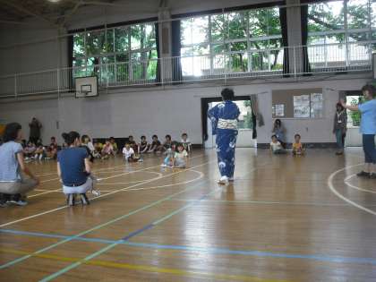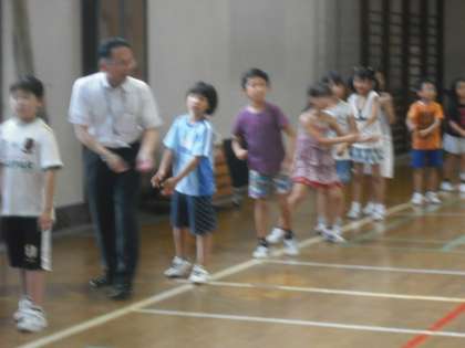 来週の中里納涼子ども祭りに向けて、今日は、盆踊りの練習をしました。無理をお願いして、踊りの先生にも参加していただきました。踊りの先生方には、本日の来校は難しいということでしたので、昨日保護者の方に踊りを伝授してくださいました。本日、踊りの先生にもきていただいたので、保護者の方も自信をもって、安心して、子どもたちに教えてくださっていました。子どもたちも暑い中でしたが、踊りの先生、保護者の方々の踊りを見本に、楽しそうに練習に取り組むことができました。