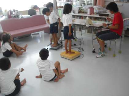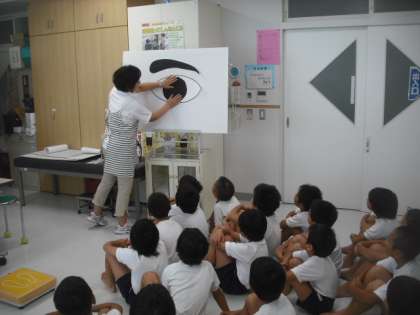 今日と明日は、2学期の発育測定です。身長と体重を計ります。計測の前に目についての学習を行いました。