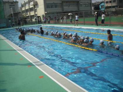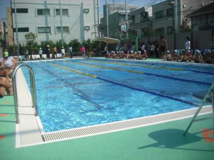 晴天の中、5,6校時に、5,6年生は、校内水泳記録会を行いました。各種目とも、全力で、自分の最高の泳ぎを目指して全力で取り組むことができました。中里小学校のすばらしいところは、演技の真剣さだけでなく、応援です。6年生が中心となって、掛け声をかけ、全レース全員で応援できました。見に来てくださった保護者も一緒に手拍子してくださり、会場が一つとなって水泳記録会ができました。