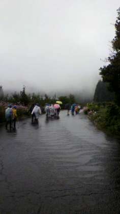 雨の中出発、途中で雨も上がり、薄日も、