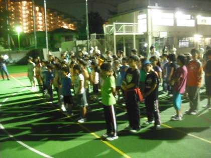 9月29日の夜間から、避難所運営委員会の方にご協力を得て、中里宿泊体験訓練を行っています。ボーイスカウトによるテント組み立て訓練、避難所運営委員会によるアルファ米にレトルトカレーをかけたカレーライスで夕食、消防団の方には、三角きんによる応急手当て訓練、地域振興防災の方には、防災のVTR視聴、避難所運営委員を代表して、実際にボランティアとして活躍された方から、震災に備えて注意していくことの講話、そして、避難所委員の方の指導により体育館に泊まる訓練をしています。PTAの方、おやじの会の方、卒業生の保護者の方等に、地域の方大変お世話になっております。また、近隣の方には、夜分に、騒がしくしていること、申し訳なく思っております。ご協力いただき、感謝申し上げます。