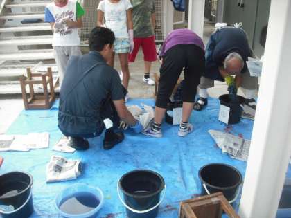 5年生は、図工で、Tシャツを染める学習を行いました。ゴムでしばったり、ひもでしばったり、服自体をねじったりしながら、染め上がりをイメージして、染める作業を行いました。できあがりはどうなるでしょう。楽しみですね。