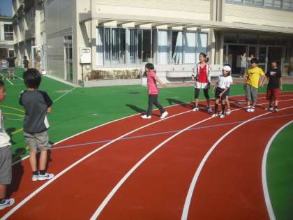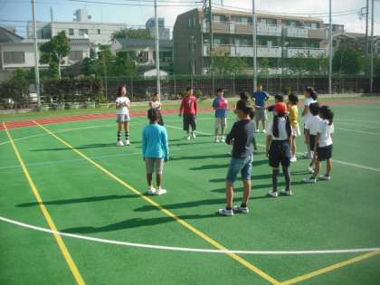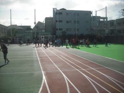 今日の朝の時間は、たてわり班での遊びの時間でした。1年生から6年生まで、10のグループに分かれて、それぞれ事前に決めた遊びを楽しみました。秋らしいよい天気の中、終わった後は、額に汗がキラッと光っていました。