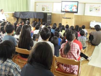 「いかのおすし」低学年の子供たちが、食い入るようにVTRを見入っています。