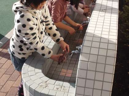 2年生が丹念に育てたさつまいもを収穫し、干していました。今日、やきいもにして、1年生を招いて、一緒にいただきました。