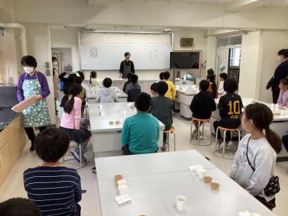 ビストロ コンフルのシェフ阿部 兼ニ 様にご来校いただき、味覚についての授業をしていただきました。五感で、五味を味わっていることを、実際に試しながら、体験させていただきました。