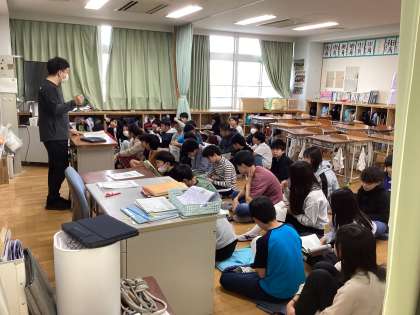 6年2組の教室に学年が集まって、社会科見学のオリエンテーションを行なっていました。