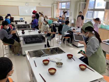 「美味しい!!」「えっ、お変わりないの?」「家でも作りたい!」と弾んだ声が家庭科室にこだましていました。