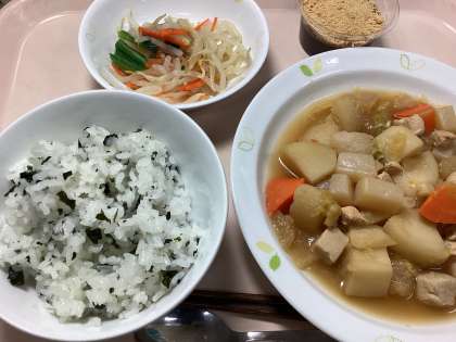 きなこたっぷりのせた、黒糖寒天でした。低学年では