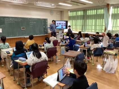 ロイロノートに自分の考えを入力し、みんなで共有していました。
