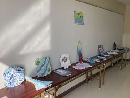 ガラスや石、大理石、枝など様々な素材を使って、質感を生かした作品作りを行いました。