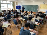 廊下掲示用のクラス表示が候補のようで、どんな模様をつけるかなど、班で相談していました。