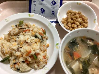 汁に大豆を入れて、さらに大豆を油で揚げて、海苔塩味に。