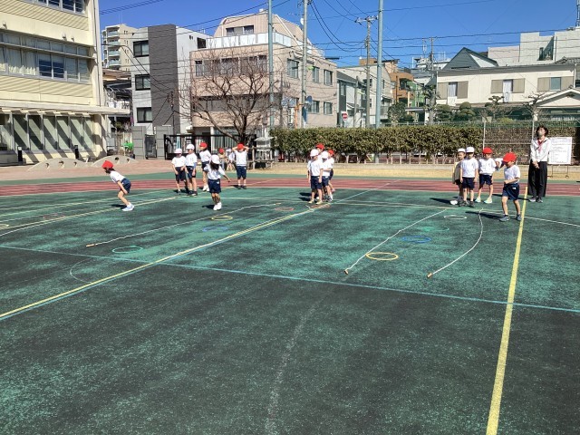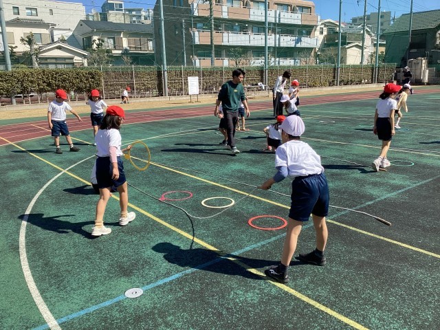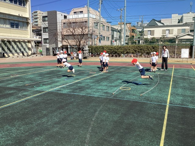 乗り越えようとするマークがあると、子どもたちの跳躍力が目に見えて高まります。