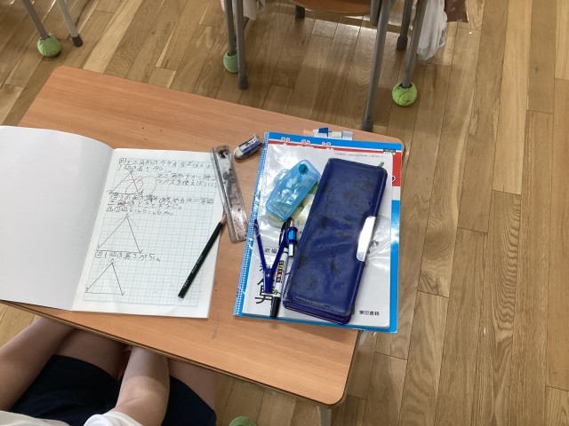 コンパスを使って正三角形をかく課題に取り組んでいました。