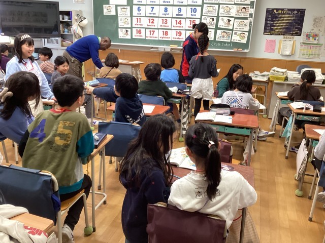 一日のスケジュールを英語でワークシートに書いて発表していました。
